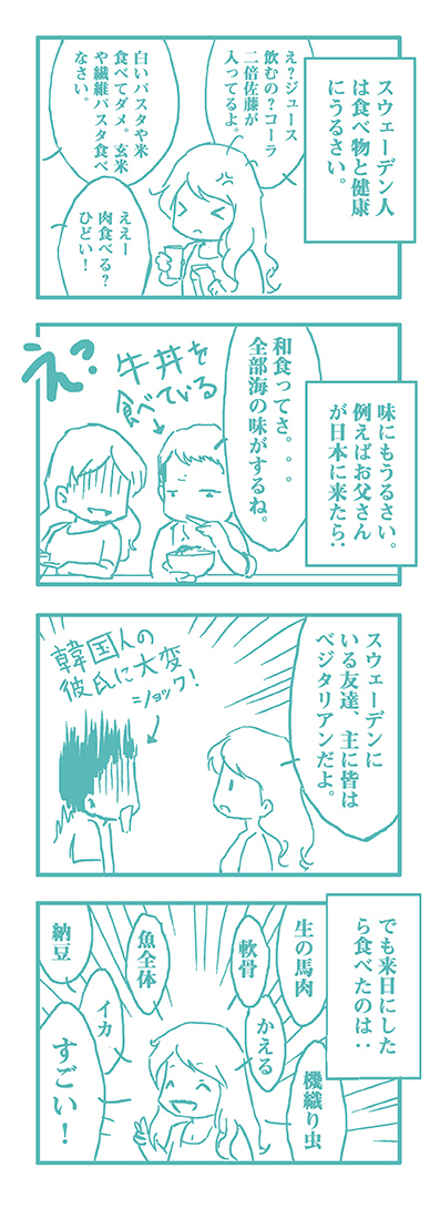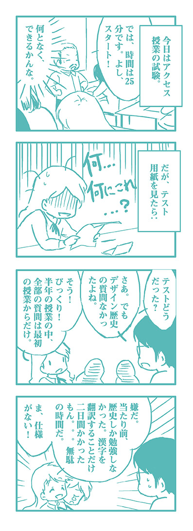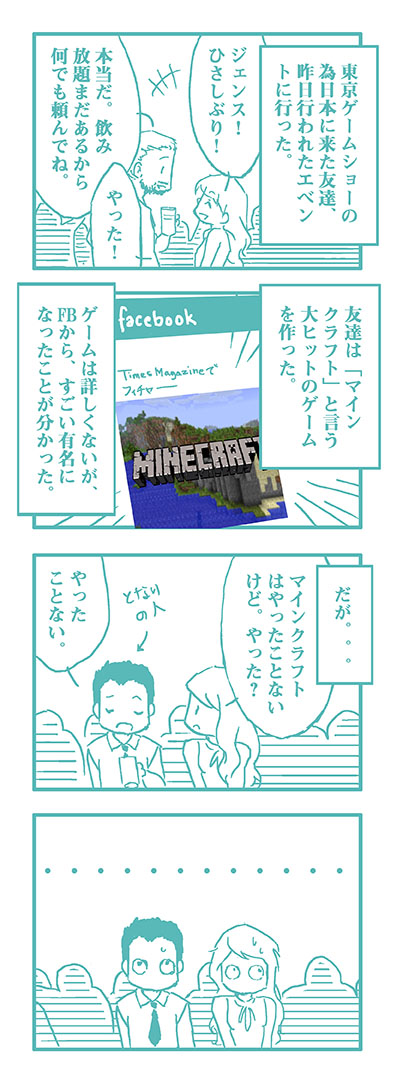 では、そろそろ学校の1st stageの終わりです。このブロゴはIC (インターネットコミュニケーション)クラスの一つの課題にあります。指定された授業では、ブログを作るのが一回の練習だけだと思ってしまったので、四コマ漫画を描いてみました。1st stageの間、毎日更新をしなくていけないことを分かったら、結構重い課題になったが、楽しました。