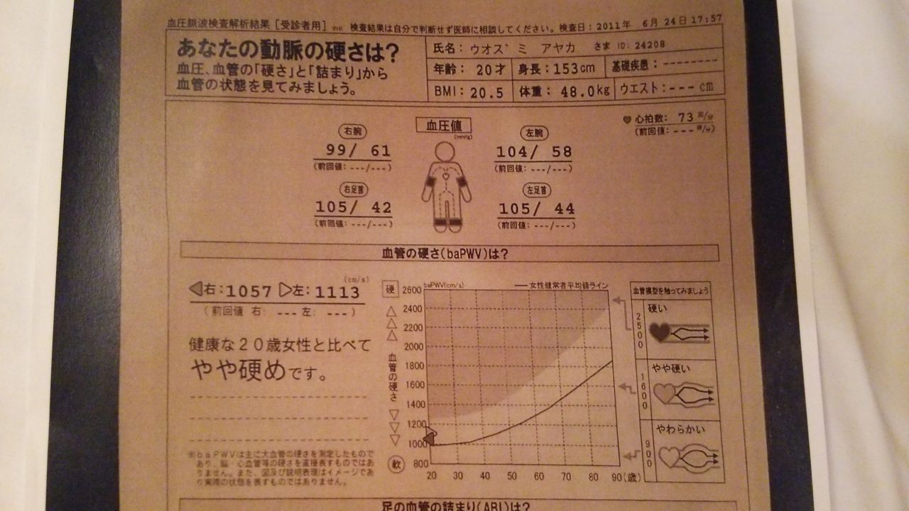 これは、連れ去られる前の娘の検査結果です。20歳なのに、襲われて血管年齢は40歳代に!