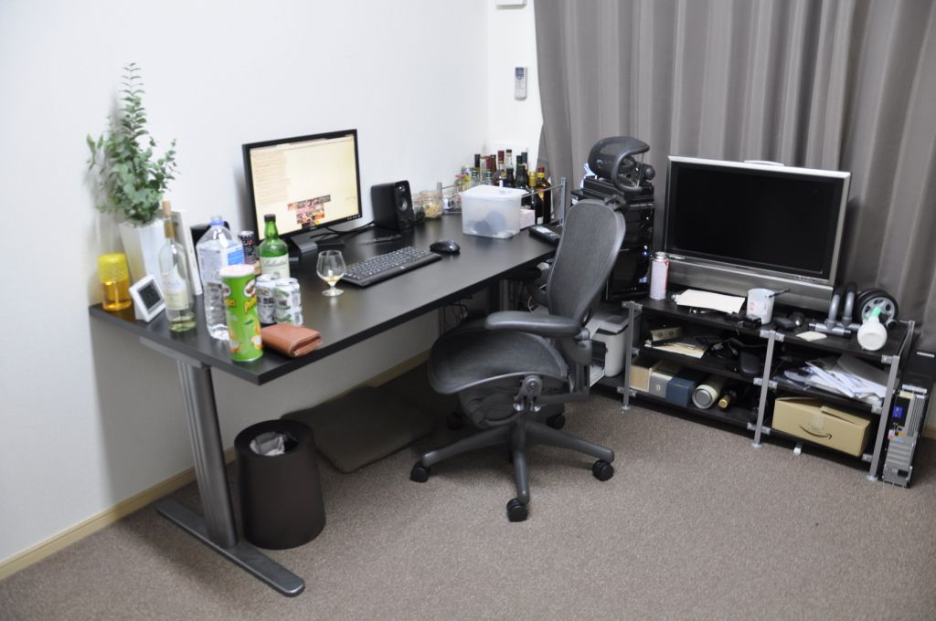 机にベッドにテレビ台置いたらもう部屋がいっぱいだ…