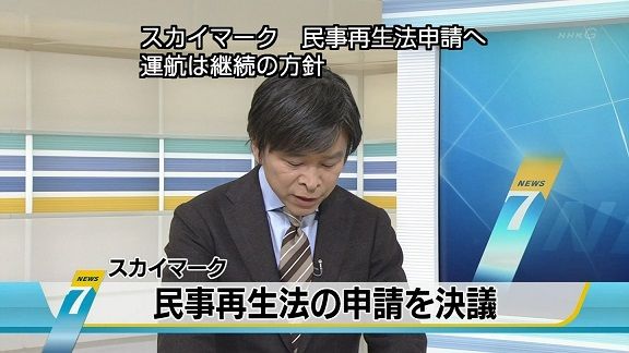 【ニュース】「スカイマーク」は業績の急速な悪化によって経営に行き詰まり、裁判所に民事再生法の適用を申請する方針を固め、取締役会で正式に決めることにしています。当面運航を続けながら、裁判所の管理下で再建を目指すことになります。