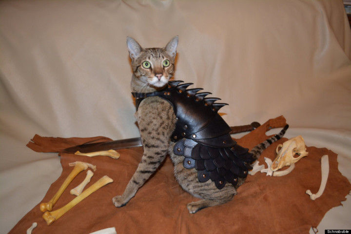 ネコ用の兜や鎧を作っているのは、カナダ・カルガリー在住のアーティスト、ジェフ・デ・ボーア氏。