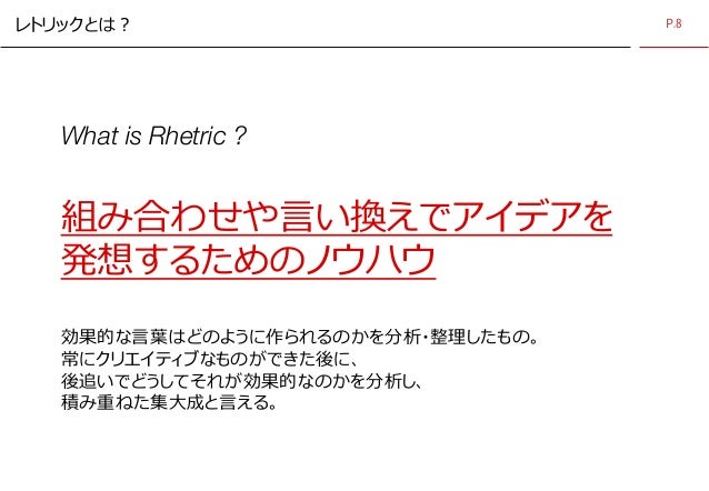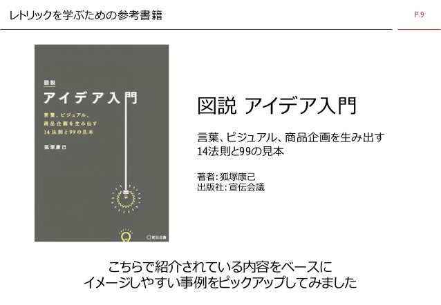 図説 アイデア入門(著者:狐塚康己氏/出版社:宣伝会議)の内容をベースに、レトリックを活かした事例をまとめてみました。 …