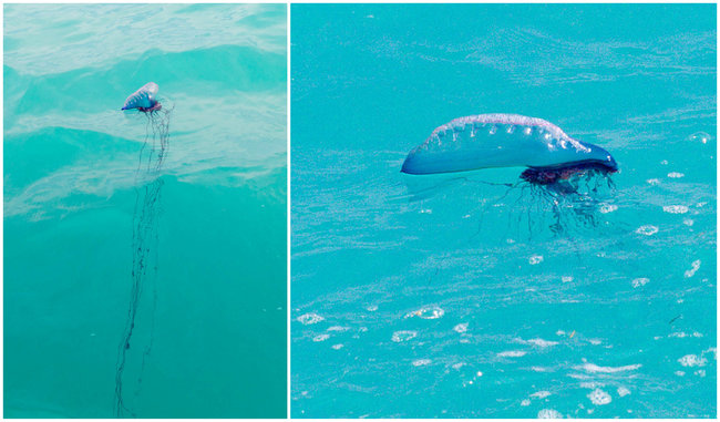 よくクラゲと間違えられるが、つながって群体で構成されるクダクラゲの仲間。体長は30センチ、幅5センチほどだが、その触手は50メートルもの長さになる。