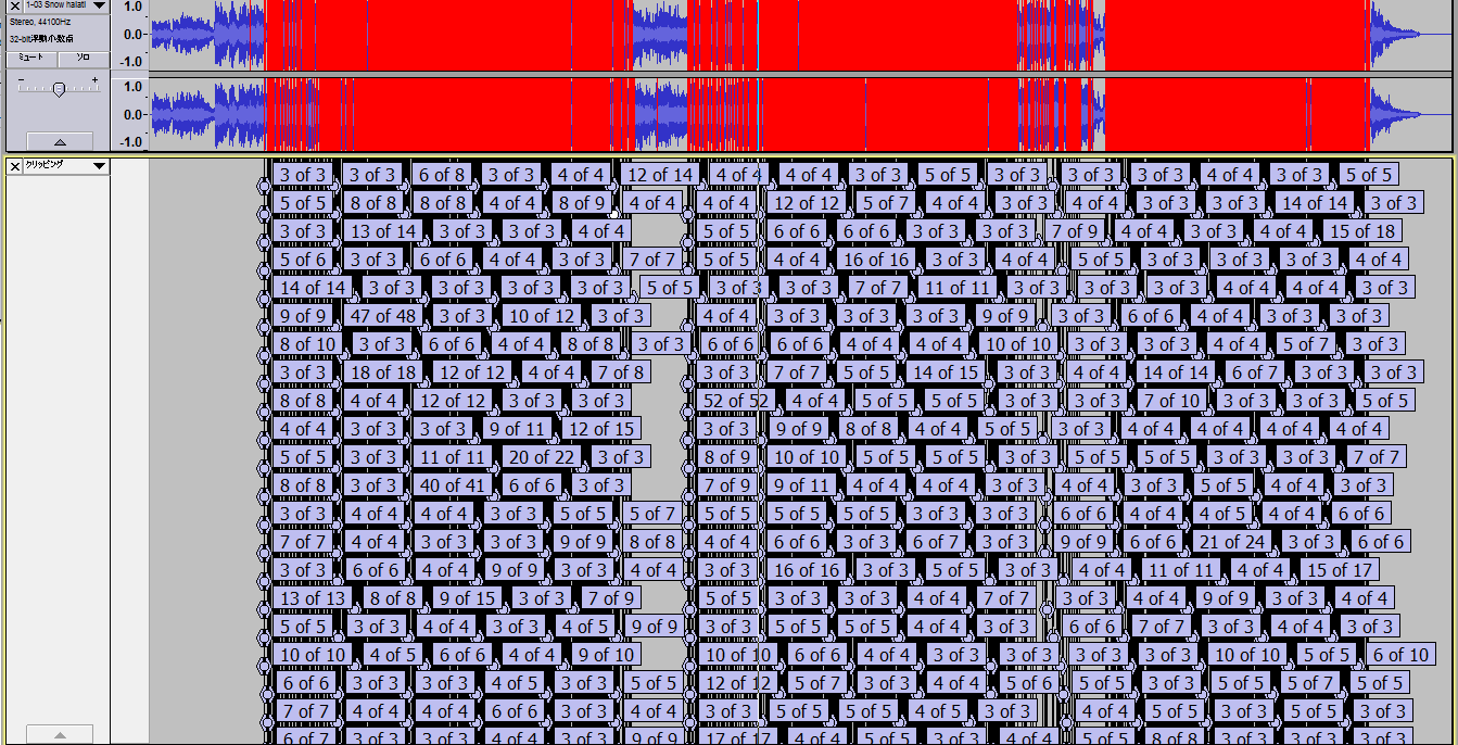 では、クリッピング・音割れしている部分を赤く表示してみましょう。