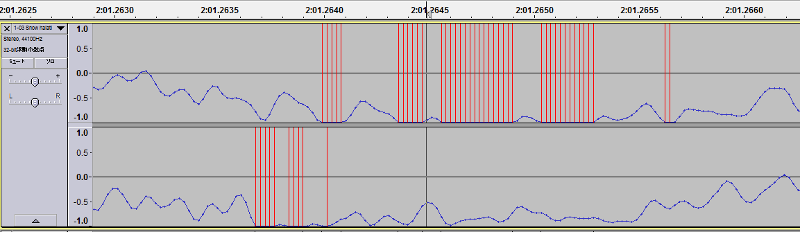 もうお分かりですね?上下にベッタリとくっついちゃってます。俗に言う海苔音源というやつです。