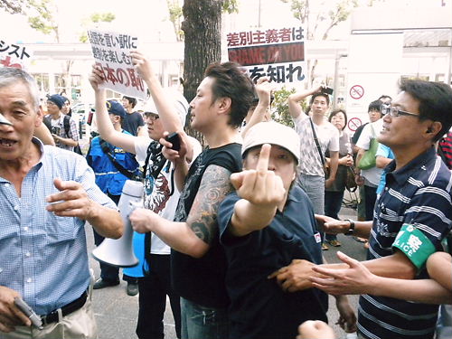 集団で(組織的に)激しい罵声を浴びせ、掴みかからんばかりの勢いでデモ行進の列に突っかかる。その手法はまるで愚連隊や不良が人に絡んでは因縁をふっかけ、付きまとうような光景で「ヤクザそのものの手法」と言えよう。