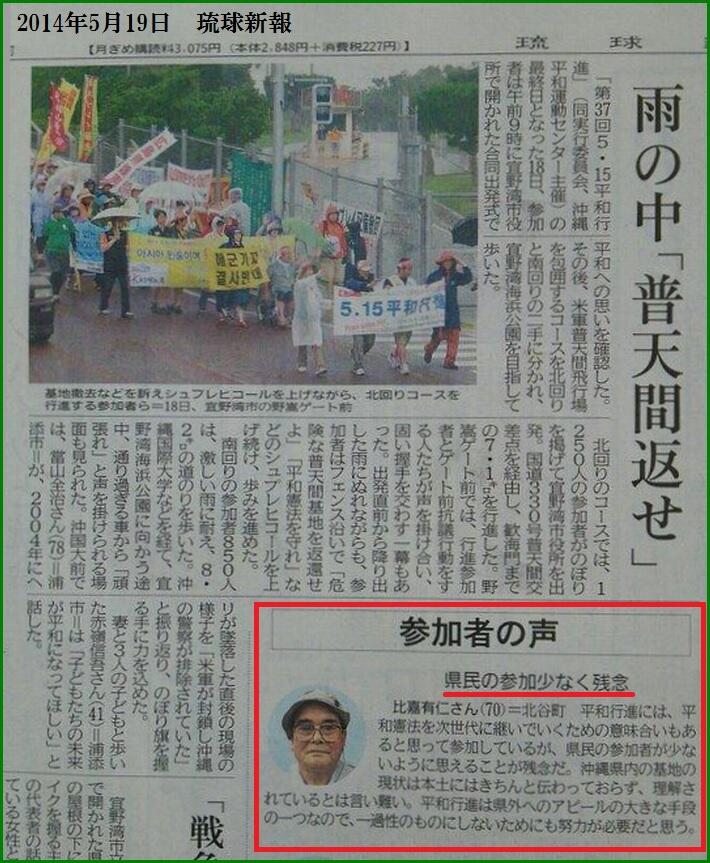 >沖縄の人が基地反対に関心がありながらも、非協力的だから、在日と言われる方々が基地反対に声を上げているんじゃないでしょうか?