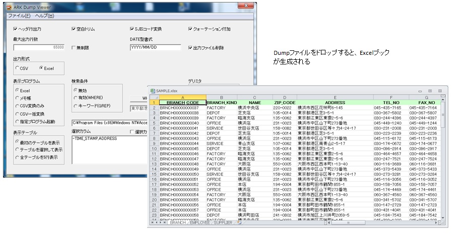 ダンプファイルの内容をExcelで見ることができますが、Excelは表示でのみ使用し、