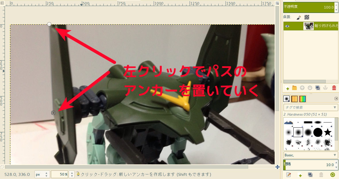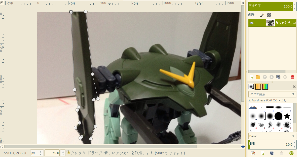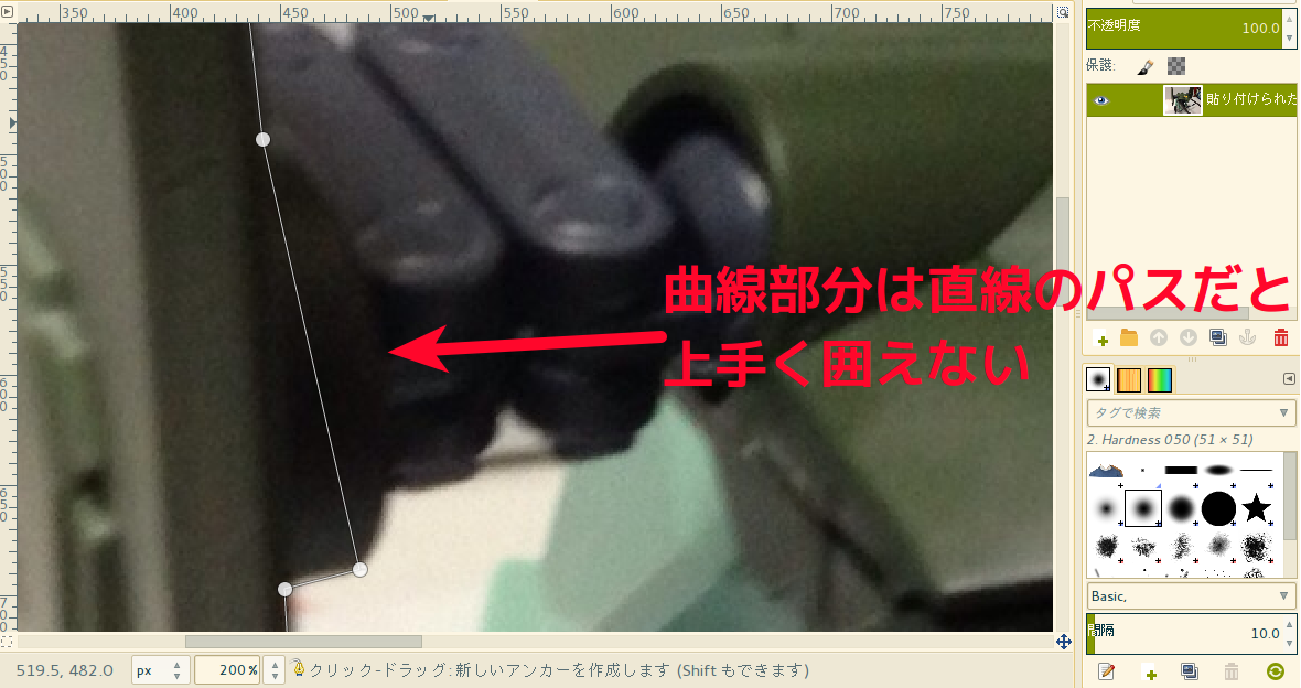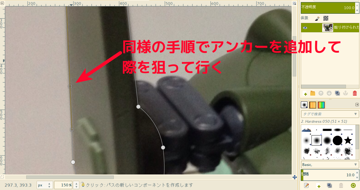 色を変えたい部分を囲むようにアンカーを置いていく