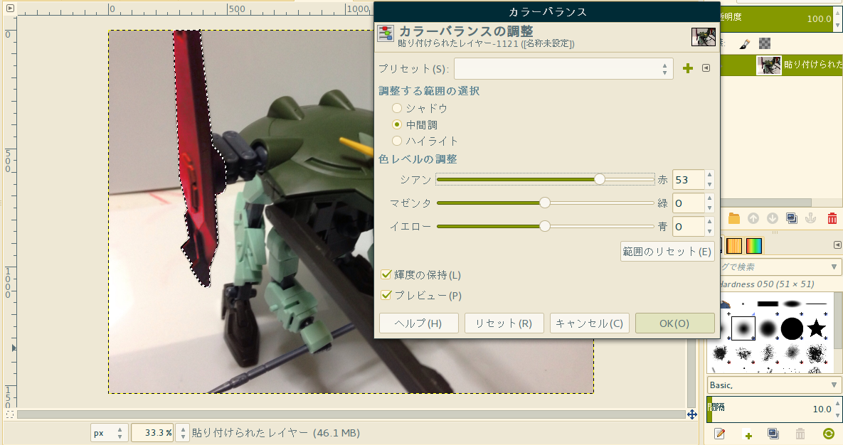 内容は見せられないけれども、こんな風になる程度にはGIMPを使い込んでる