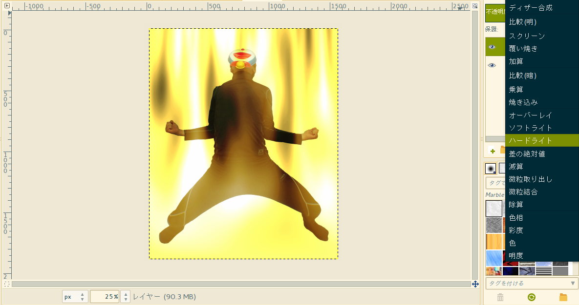 右上のレイヤーモードをハードライトにしてこれで今日からキミもスーパーサイヤ人