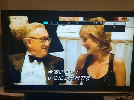 そういえば、先日、衛星放送で『クィーン』という映画を観ていたら、こんなシーンもあった。ダイアナがまだ王室を離れていないときのビデオだろうけれども。