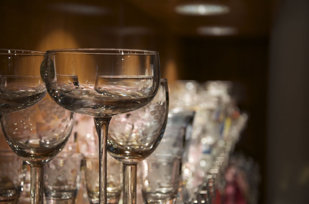 グラスの足首のところで切るな。あと、半歩右に動いてオクのグラスを右端まで持ってこい。