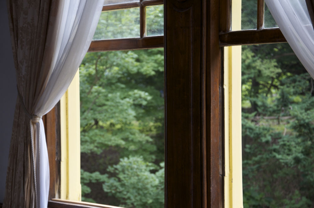 4枚目:ピントを木々に当てたほうがよい。(その位置にいて窓枠をじっと眺めることないだろ?)
