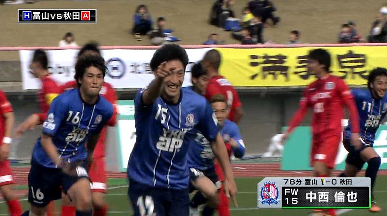 この試合に、富山のルーキー・中西倫也選手がスタメン出場し、なんとデビュー戦でいきなりゴール!