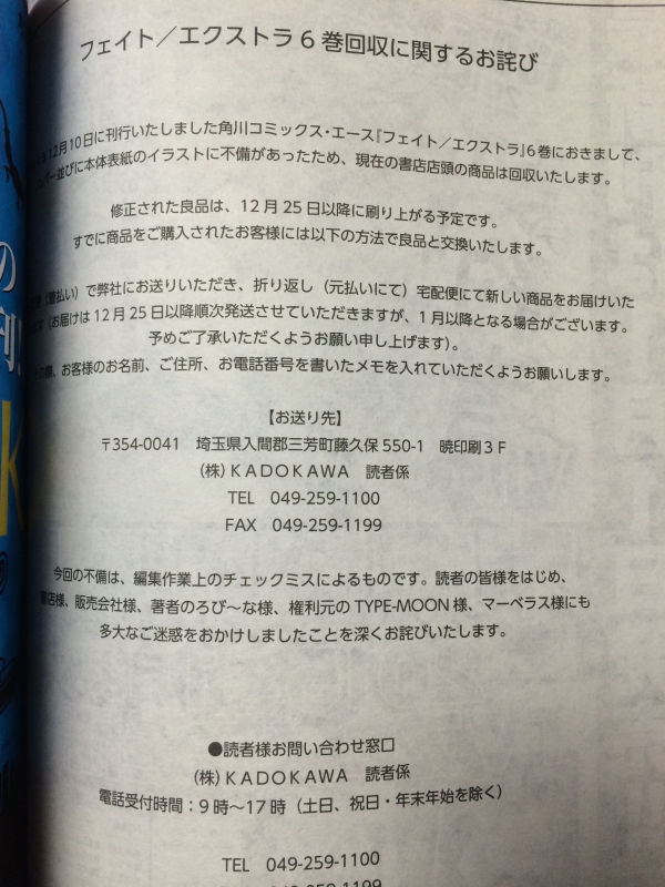■■■角川が回収騒ぎを起こしておりましたが…。