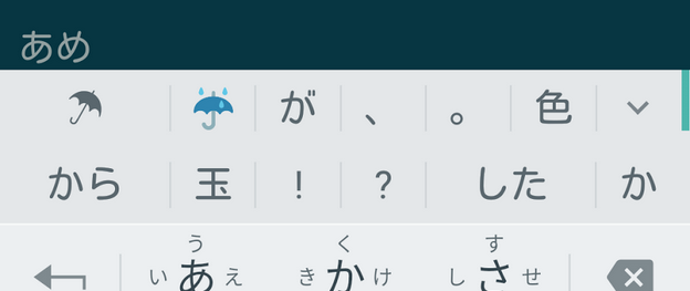 「あめ」「うれしい」など一部の候補を確定した直後に、確定した文字に対応する絵文字や顔文字を変換候補に表示するようにしました。