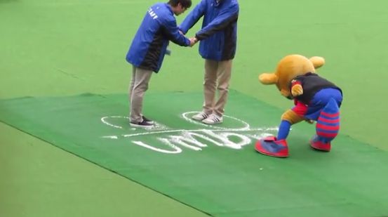Jリーグでは今季から公式戦に“消える泡スプレー”のバニシングスプレーを正式採用していますが、昨日のJ1の試合で、おそらくJマスコット初となるバニシングスプレーを使ったパフォーマンスが行われました。