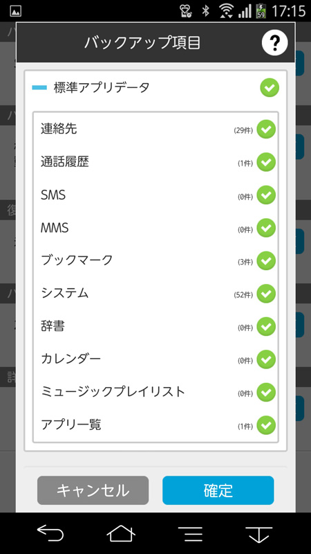 「データのバックアップ」にチェックを入れておくと自動的にバックアップされる |