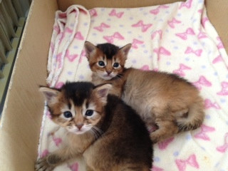 アビシニアンの長毛種 ソマリ(ルディ)の純潔種です。 順調に育てば面会は3月初旬から お引渡しは2回目の予防接種後で5月の中頃になる予定です。 今の名前は生家での呼び名で正式には里親さんに決めて頂き血統書に記載してお渡しします。 弟のタロウ君の面倒をみようとしてるのか只のお節介なのか社交的で甘えん坊な感じです。女の子なのにビビりかも?! 見た目は弟のタロウより大きいですが体重はタロウより軽く毛葺きの良さが判ると思います。 http://blogs.yahoo.co.jp/hyakkimaru1963/folder/1225828.html ↑のブログで成長過程を公開してますので御覧下さい。 遡って出産シーンから見られます。 その他 1期~17期までの兄姉の成長記録も御覧頂けます。 |