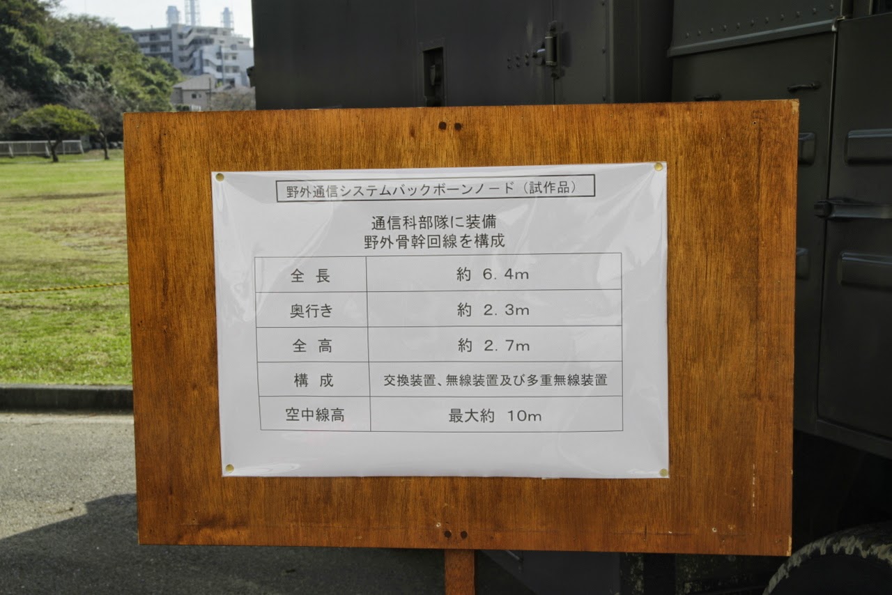 今回展示された野外通信システムは試作機で、今年度末に実用機が通信学校に配備になるそうなので、来年は他の装置と合わせて展示を願いたいと思います。