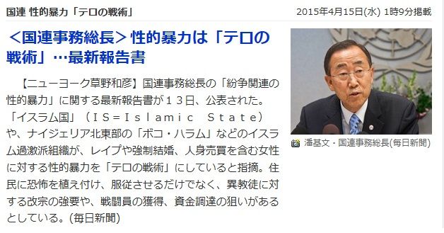 韓国人の国連事務総長、「性的暴力はテロの戦術」って、