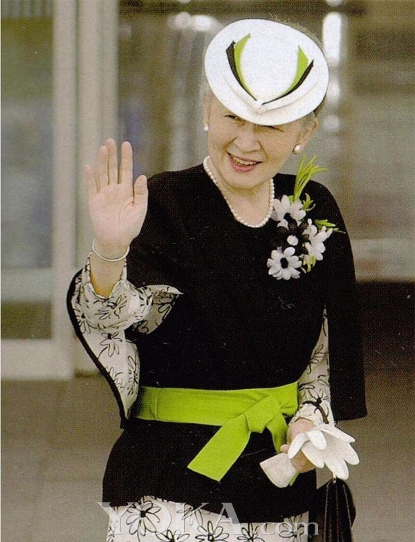 ↑ 急に 美智子さんの洋服賛美部隊が湧いてきてますねwこういう人達が美智子さんを裸の女王に仕立てるんです。本人の滑稽な自己満足の最たるものがこの黄緑を配したセットです。お約束の皿帽子がもう・・・・末期的。