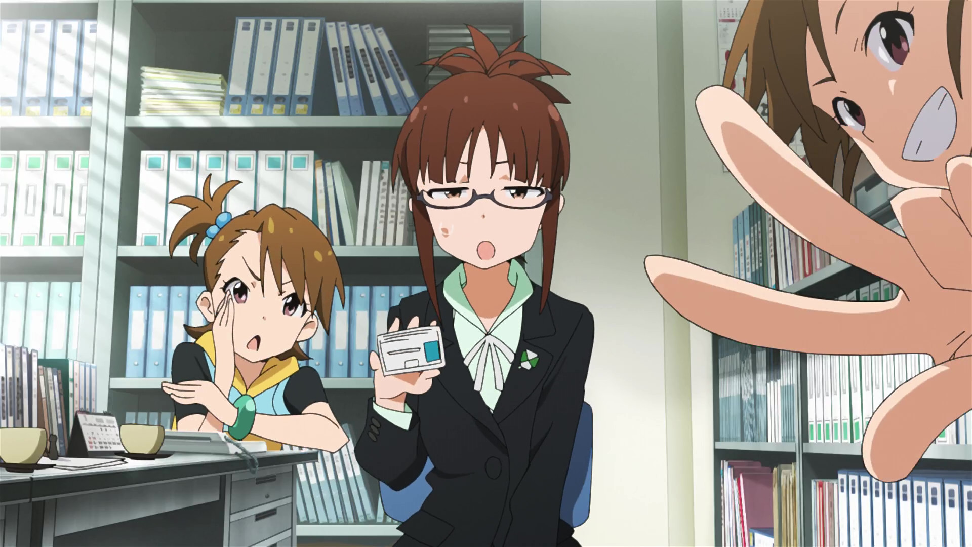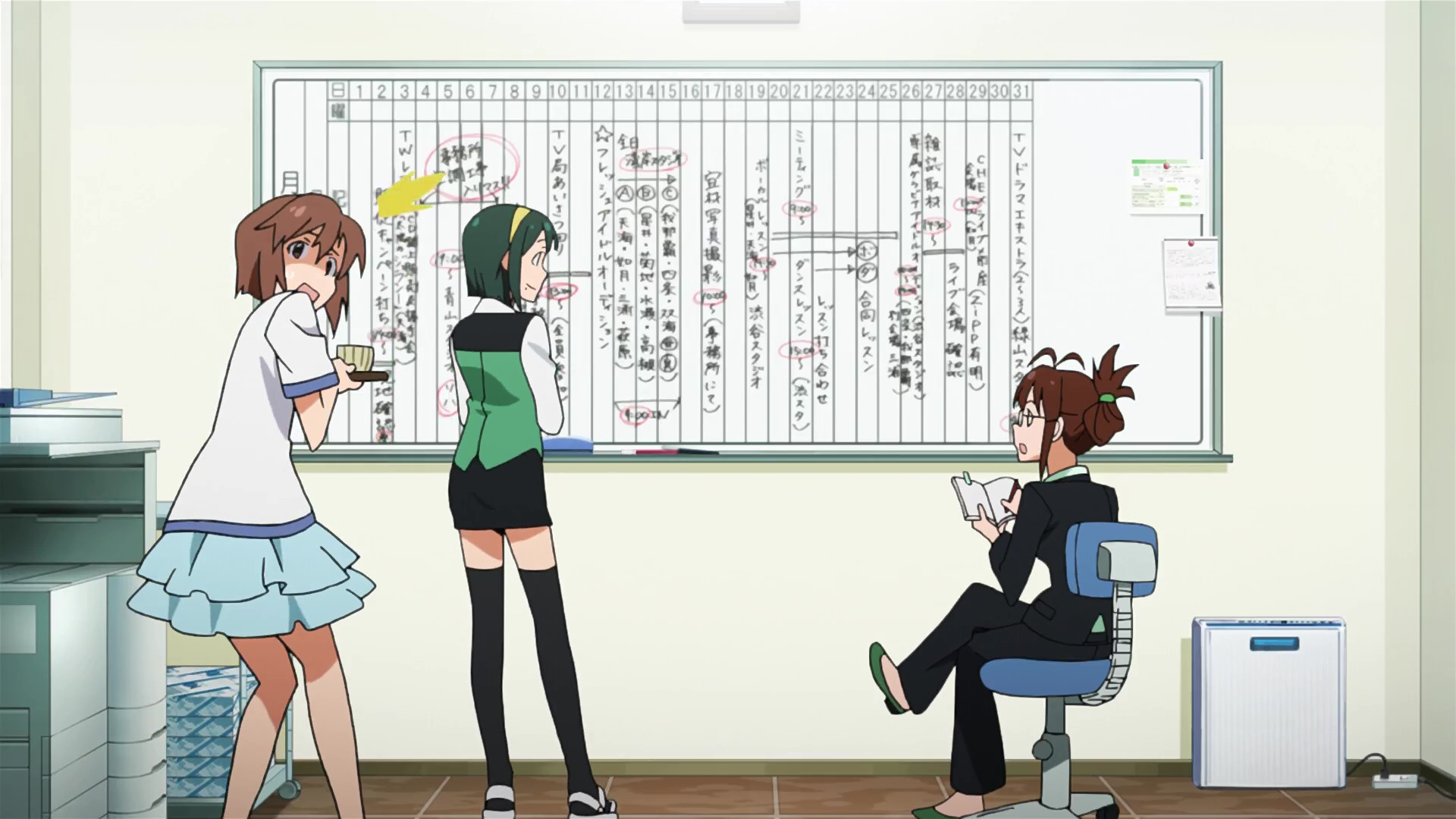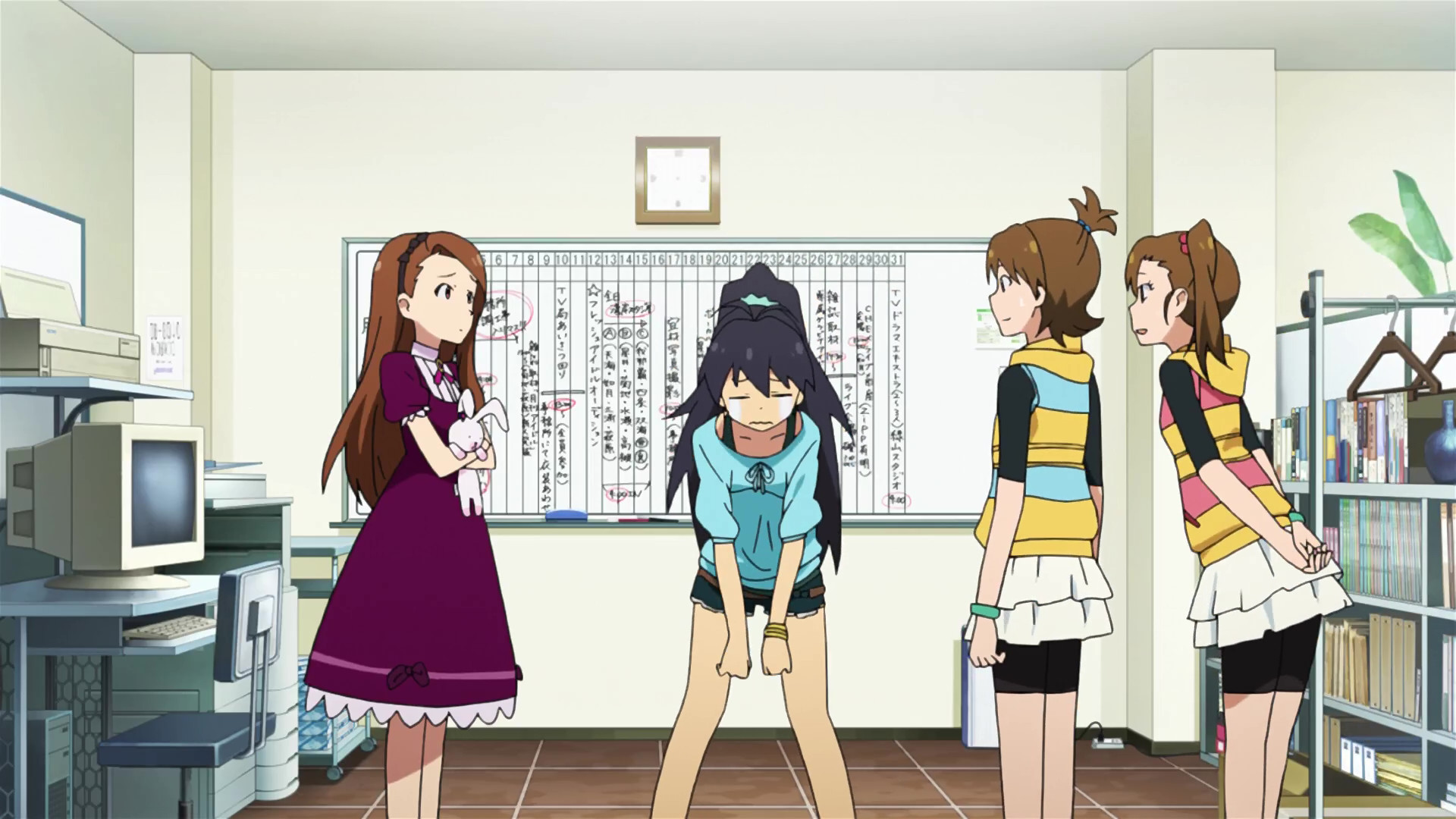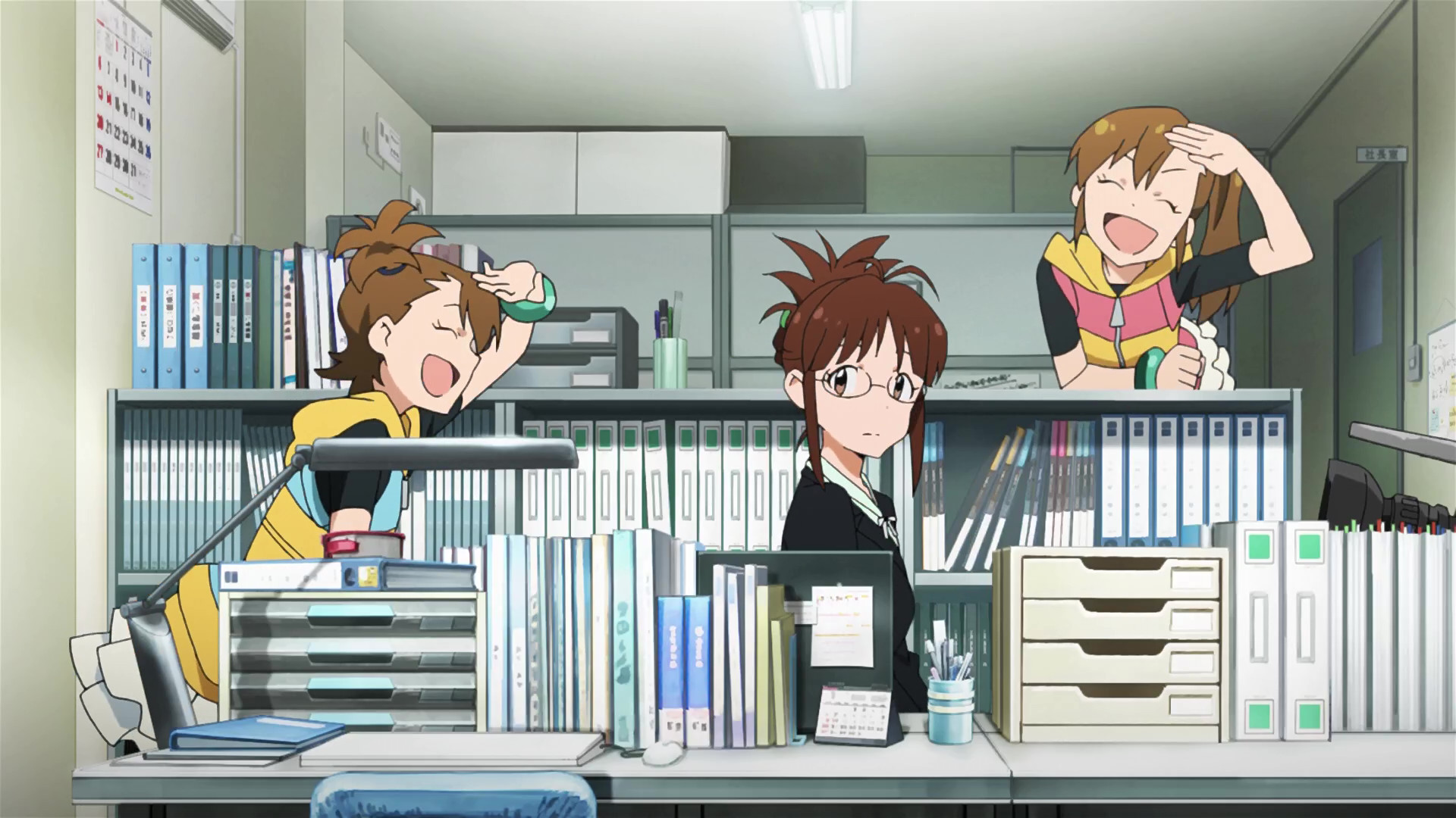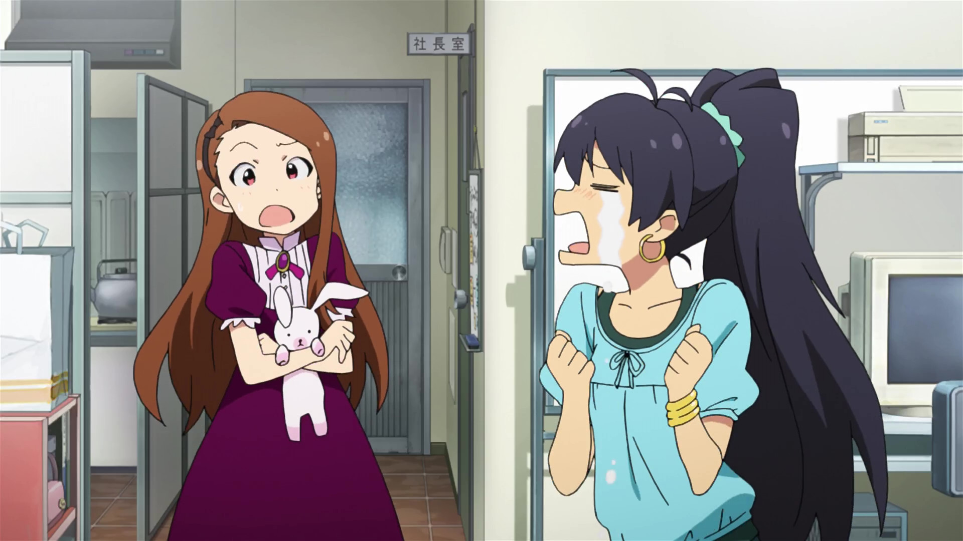 春香:えっと、ここが私たちの事務所です。(This is our office.)