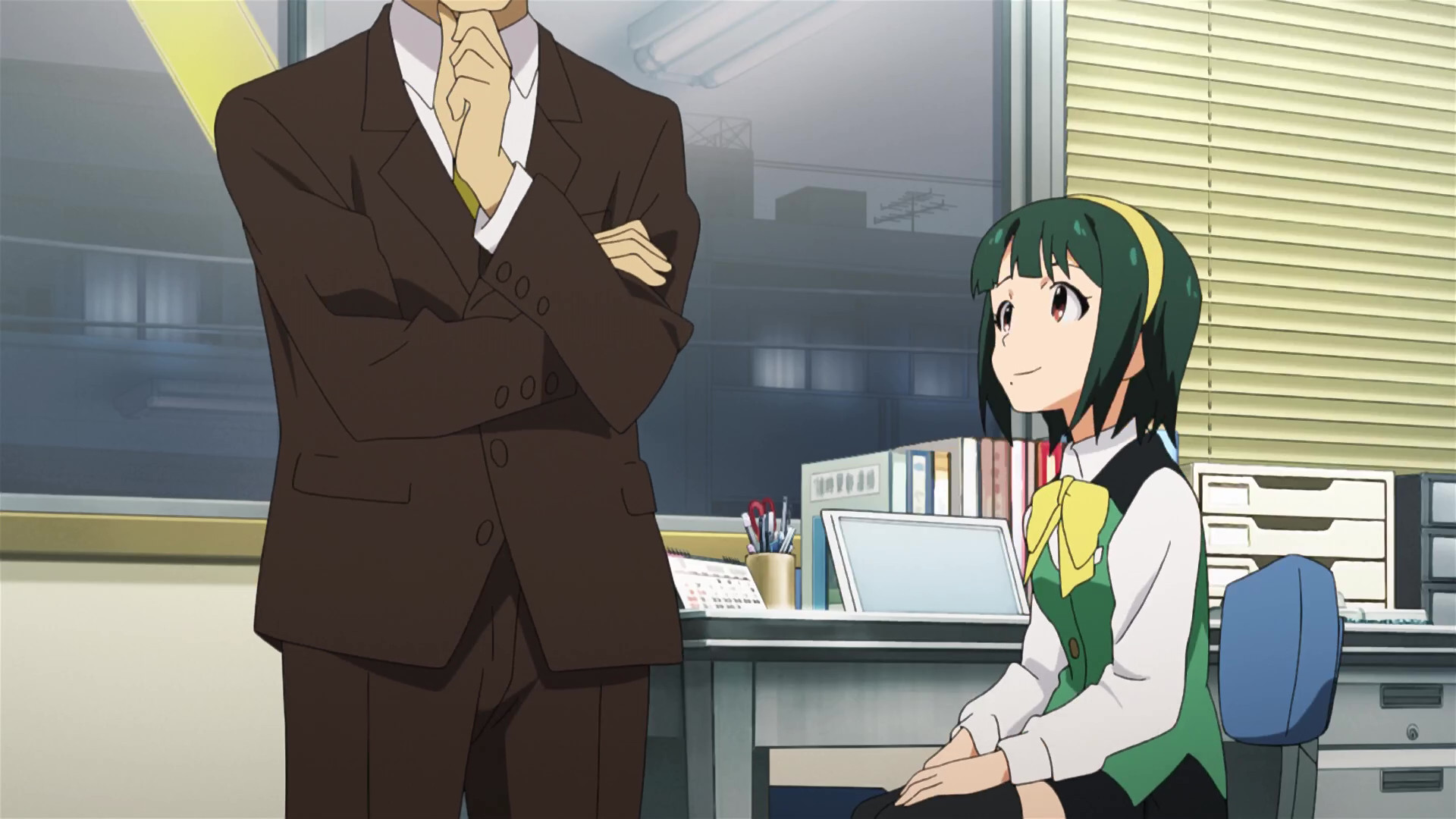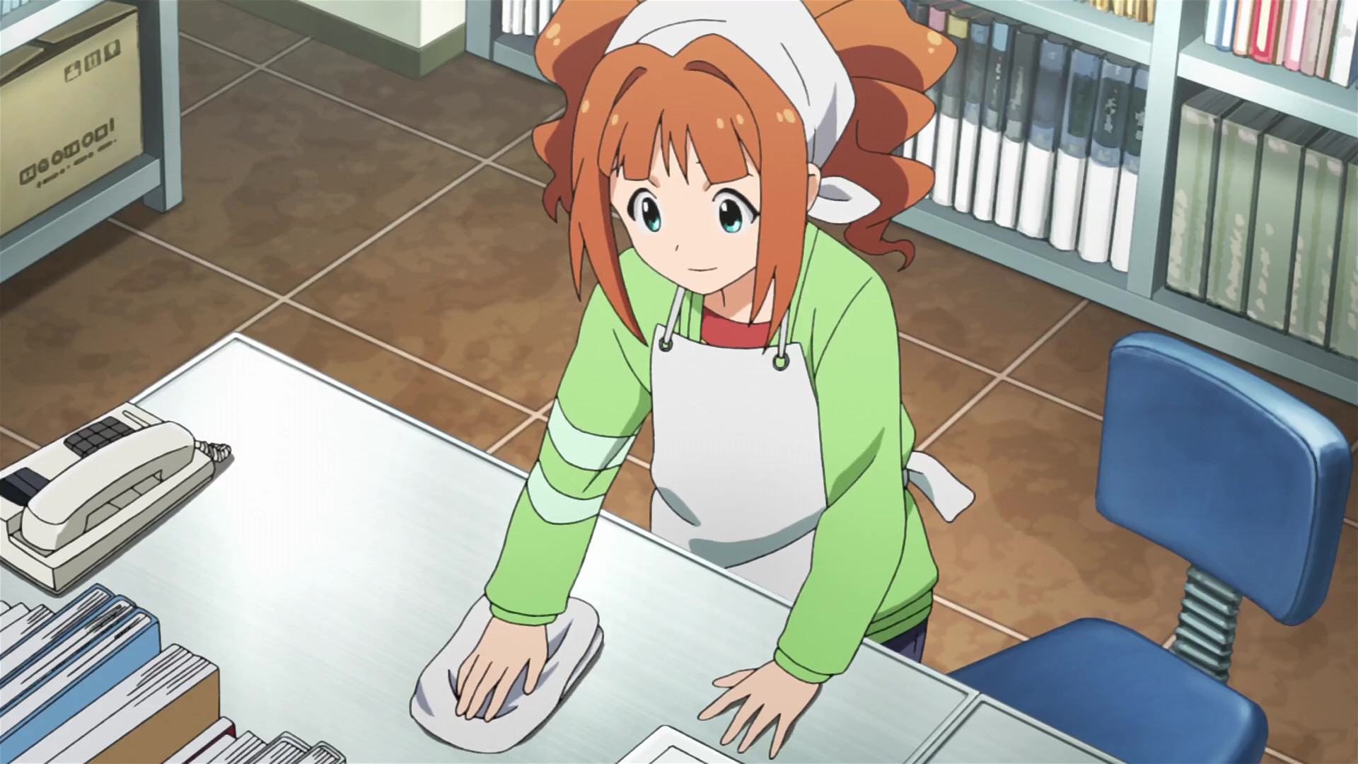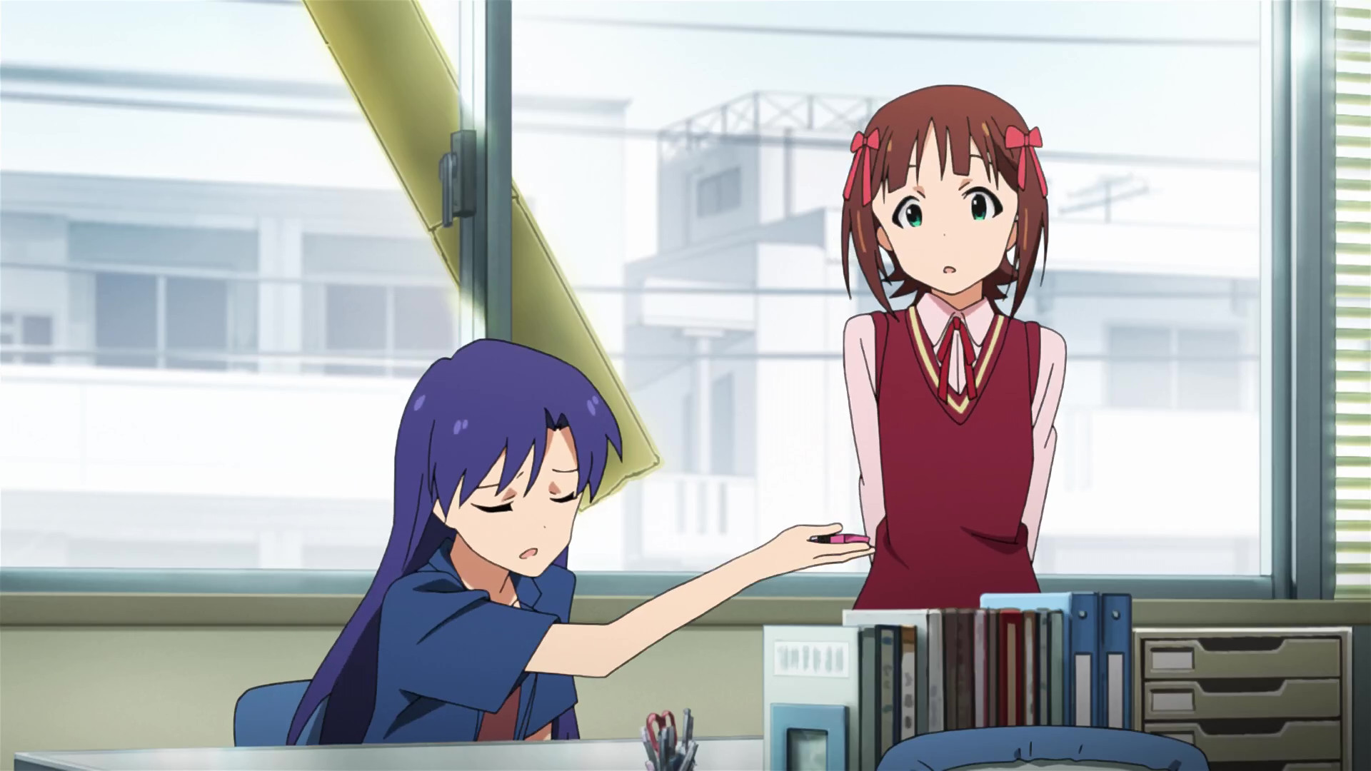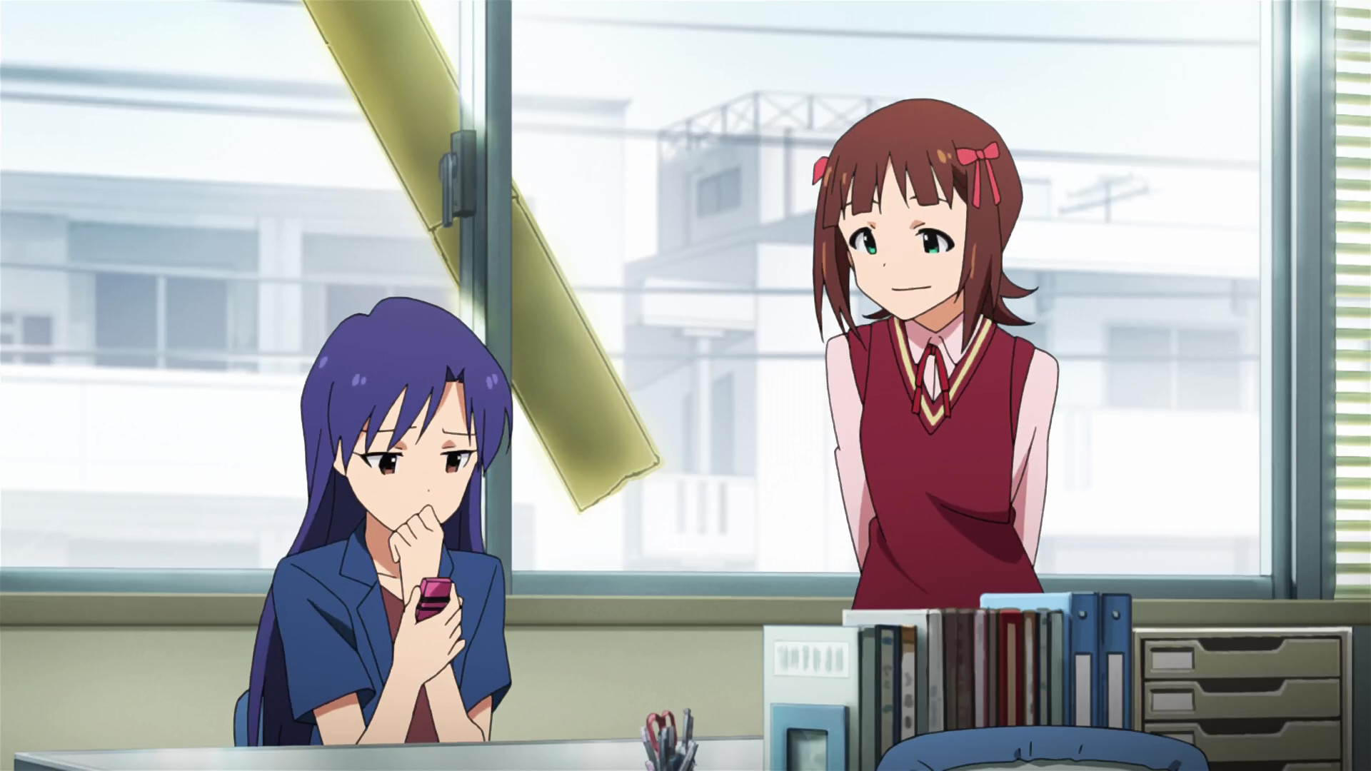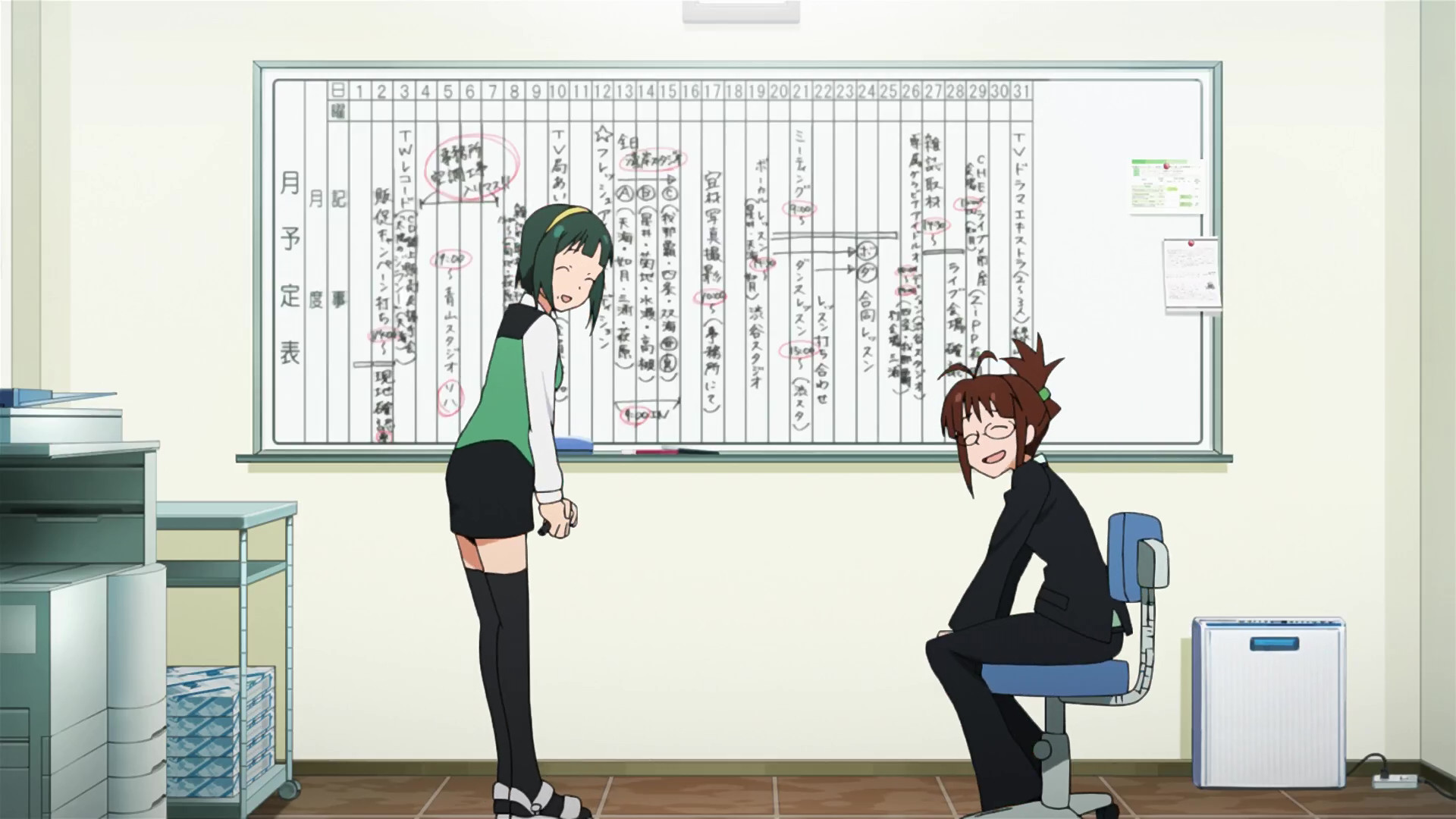 春香:えっと、ここが私たちの事務所です。(This is our office.)
