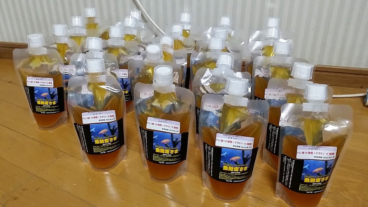 魚馳走さま(餌カップ付)の新パッケージが完成しましたが国内用はもう少しお待ちを。