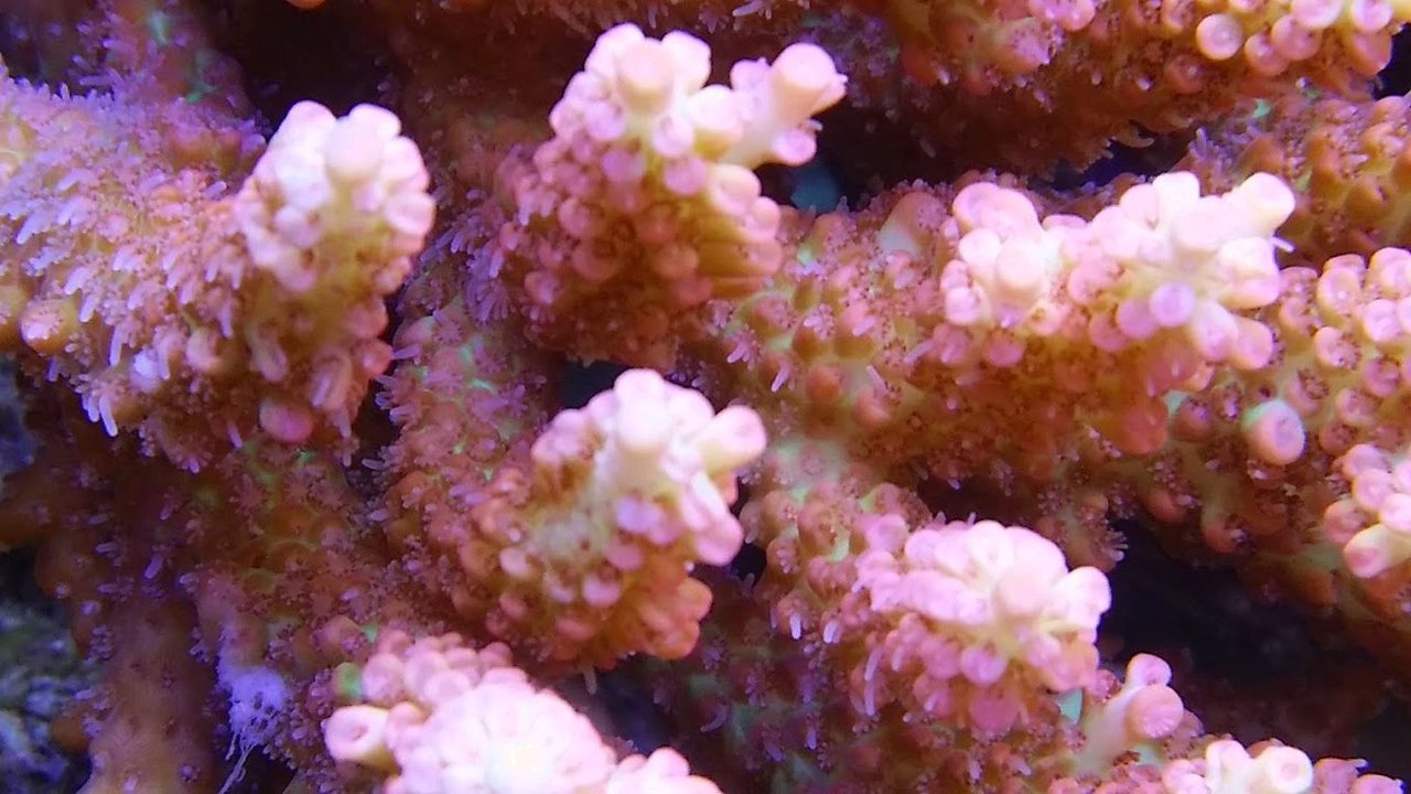 珊瑚が元気になると共肉が厚くなりポリプが巨大化する事で色彩が濃くなります。ただし
