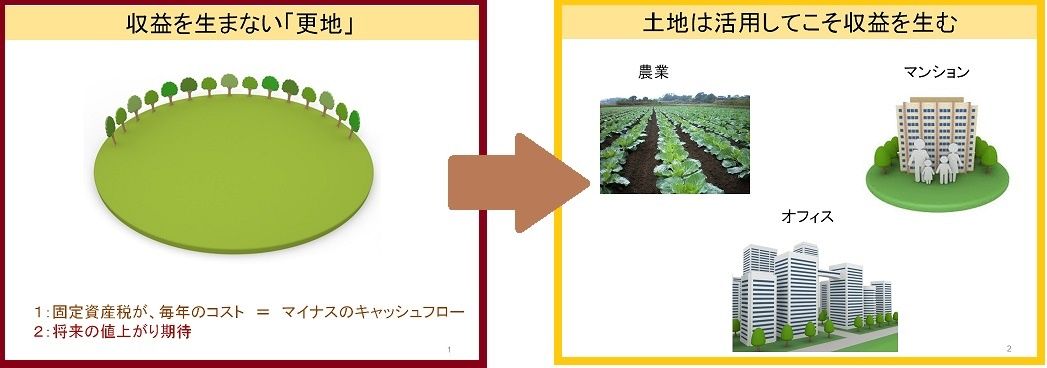 農地・山林ですら、補助金と農産物売却代金の合計現金収入が収益であり、オフィスやマンション、ショッピング・モールの賃料収入と同列である。
