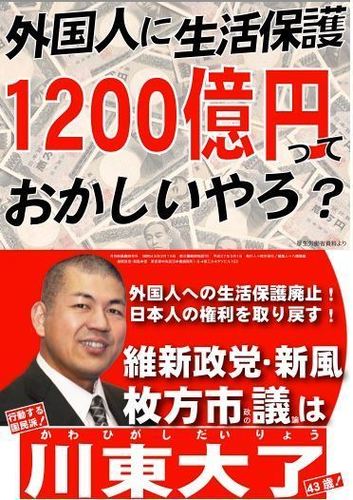 なお、今回の統一地方選では枚方市(大阪府)より「行動する保守運動」関係者として川東大了氏が出馬。惜しくも当選はならなかったが、それでも何の地盤も組織もなく、初出馬ながら約1,200票を獲得したことは特筆すべき事項である。