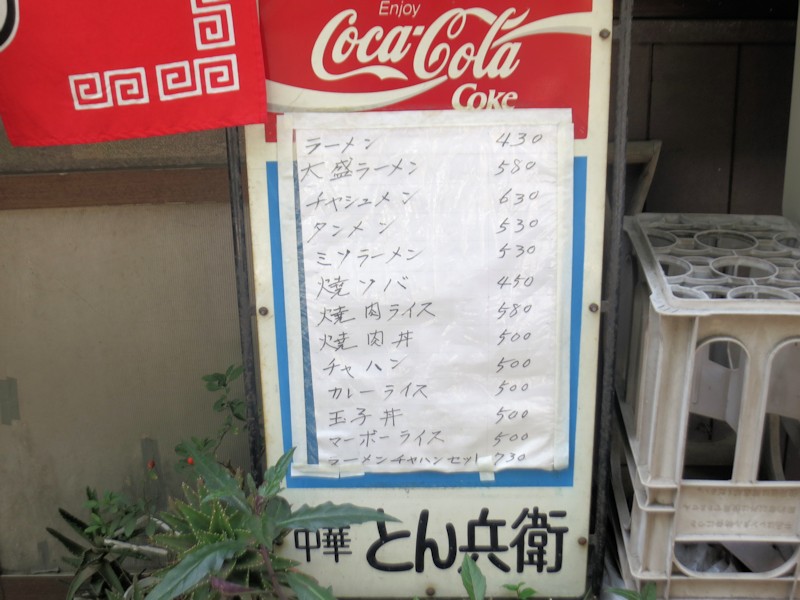 壁に貼られた短冊を眺めると、ラーメン430円、焼ソバ450円、チャーハン、焼肉ライス、カレーライス等々。
