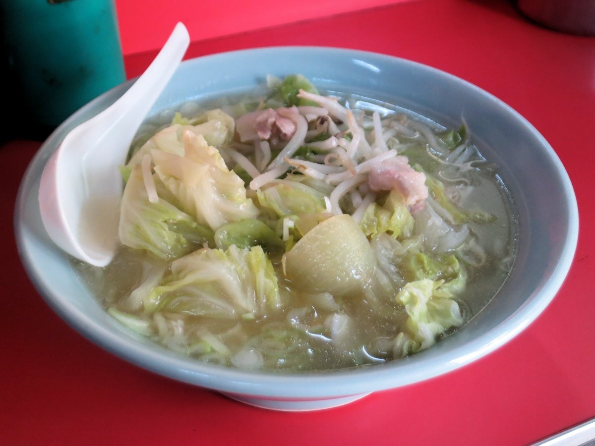 ハクサイ、タマネギ、モヤシ、そして豚バラ肉を豚ガラ、鶏ガラスープと共に煮込んであり、野菜出汁中心の味わいです。