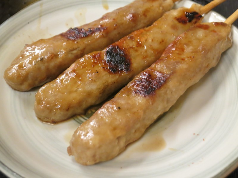 合鴨焼き(正式名称は失念)、このお店の串焼きは基本的に100円ですが、一部、150円や200円のものがあり、合鴨焼きは150円でした。