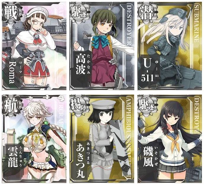 E6でU-511が出るのには驚きました!Romaはボスマス以外でも出るので頑張りたいところ・・・