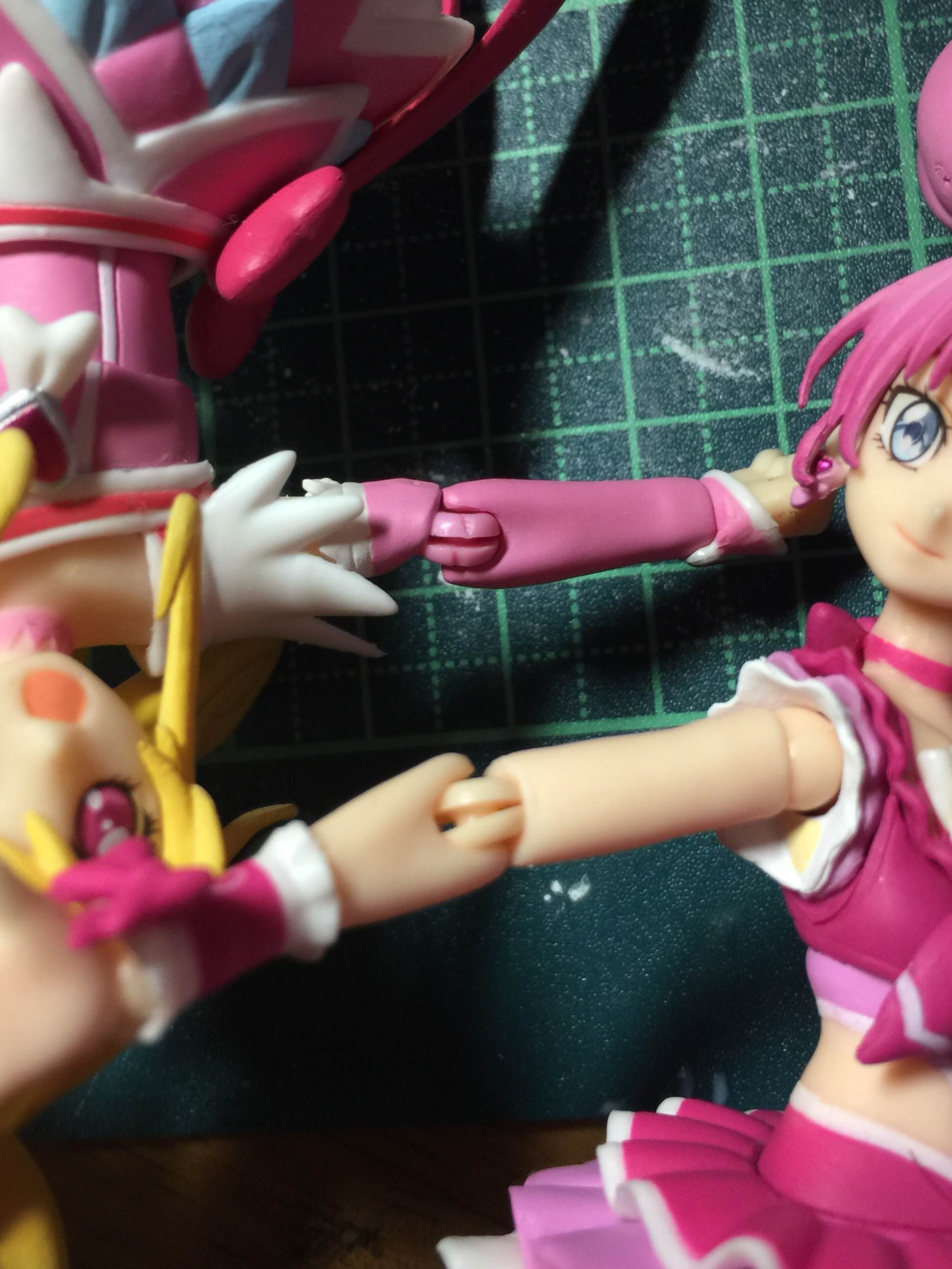 >ウチの響は右手首が取れやすいですけどね。 今までのプリキュアーツに比べると手首の交換がすごくスムーズなんですよね ジョイントの形状に一見違いは無さそうだし、成型色(素材)の違いのせい?(メロディは肌色、サニーは白) | ||