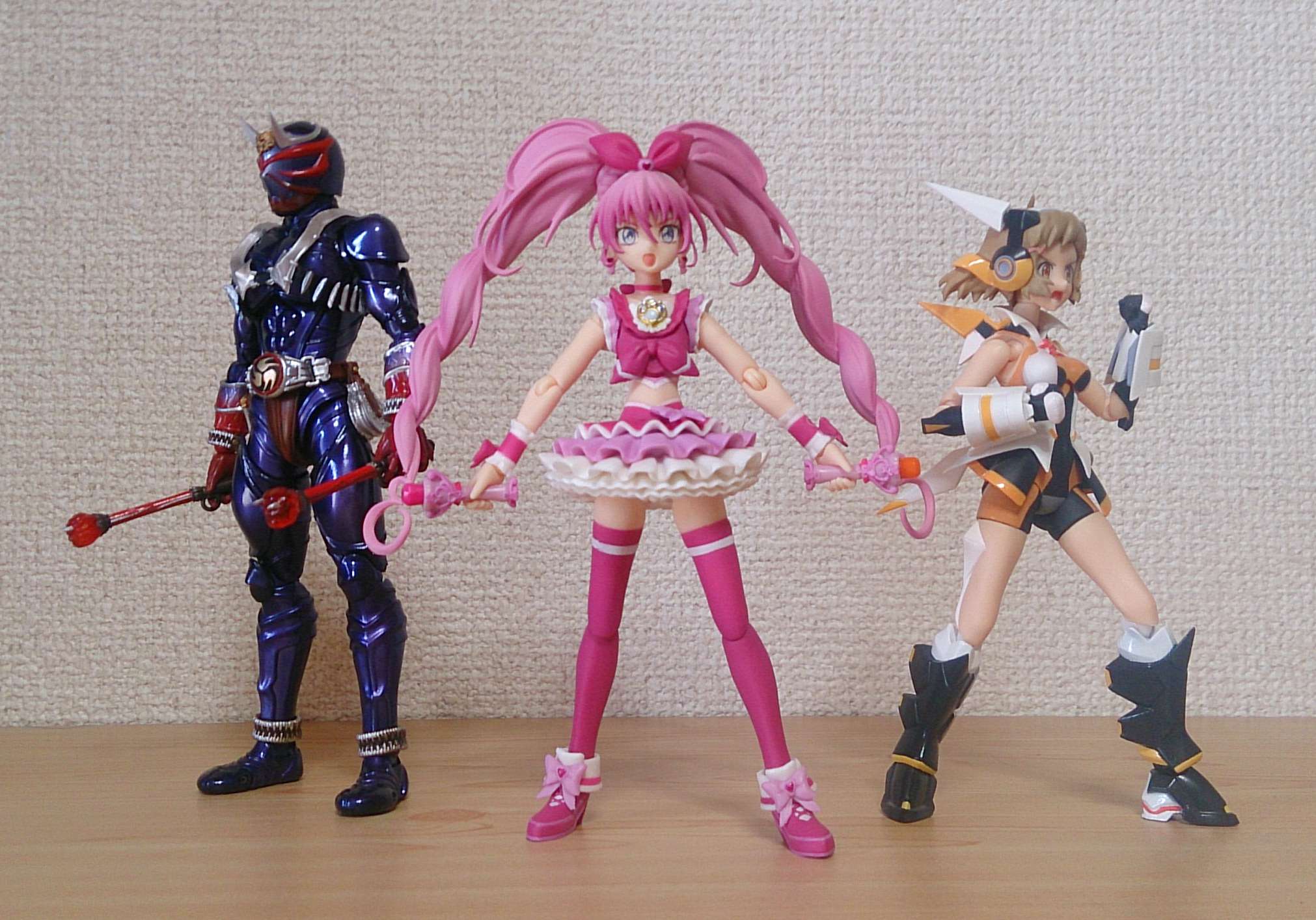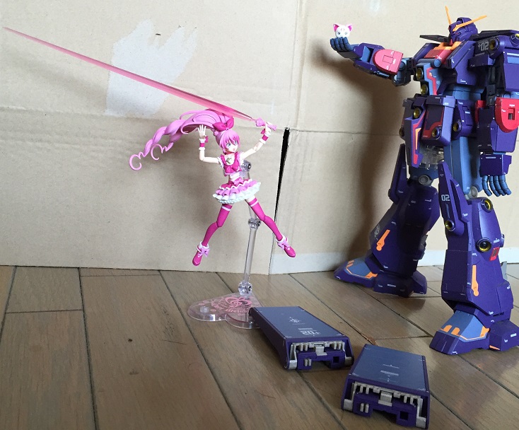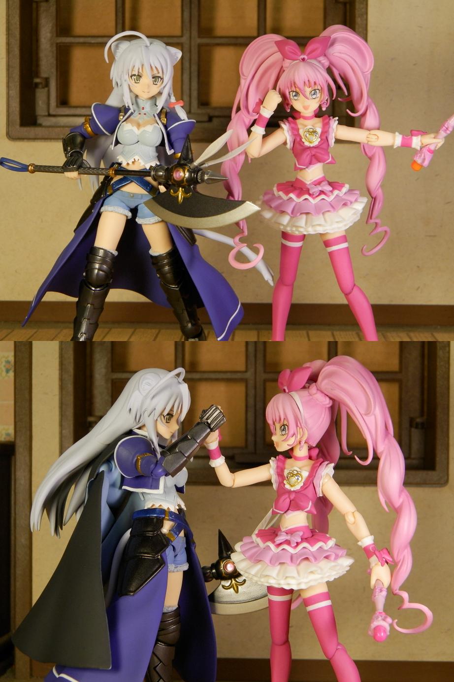 両手エモノ使いと。 もうfigmaと並べても遜色ないですが、ウチの響は右手首が取れやすいですけどね。 | ||
