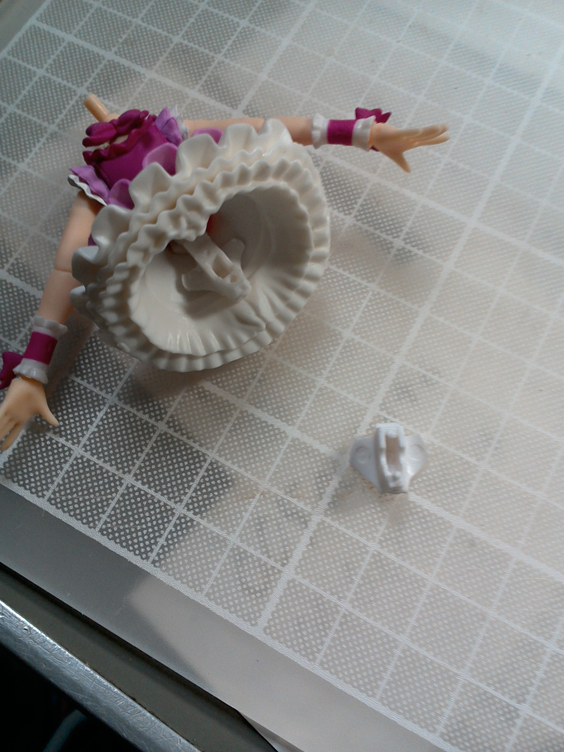 >下半身構造はこんな感じで結構簡単に引っこ抜けます フレッシュの時はまずお湯つけて分離させて フリフリやらスカートやら削って可動範囲広げたなあ Xの字拳のポーズとかとれますか? | ||