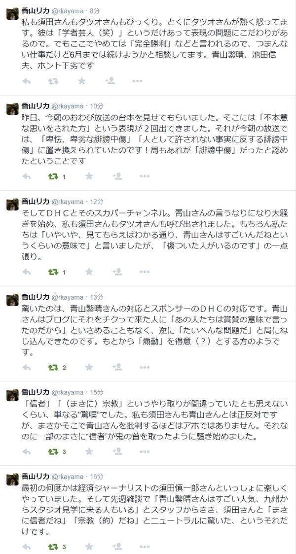 後日、香山は話し合いの場に現れなかった。代わりに番組に香山からの文書が届く。