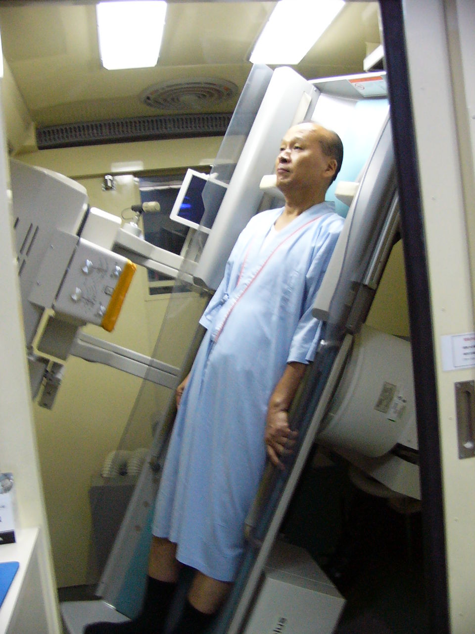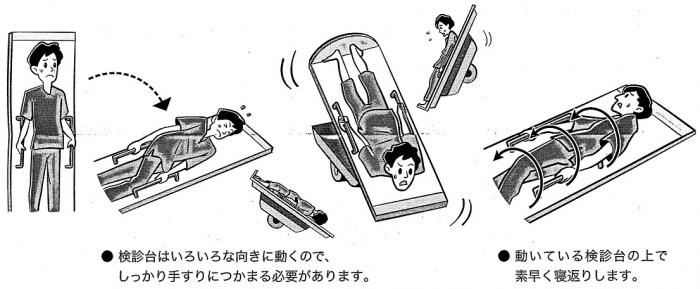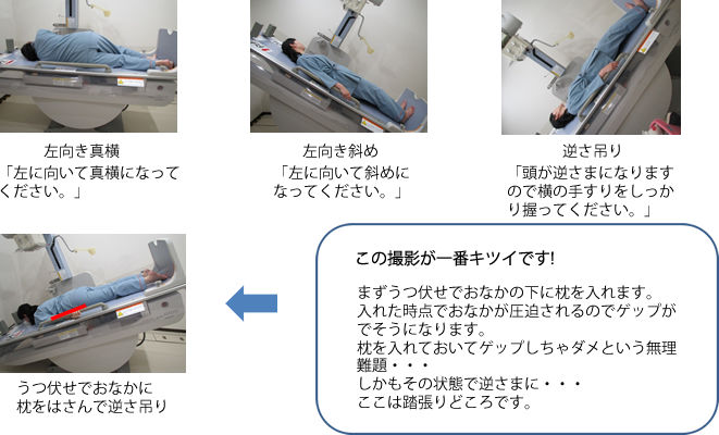 バリウム飲んで、台の両端の手すりを掴んで、体を倒すやつだな