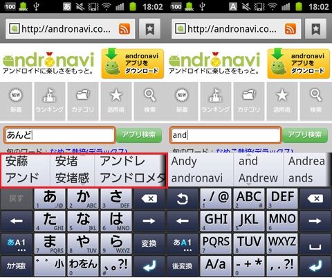 PCのキーボードと同じように並んだキーを使って入力するので、Android端末を横向きで使用する時や、両手で入力したい時に向いています。