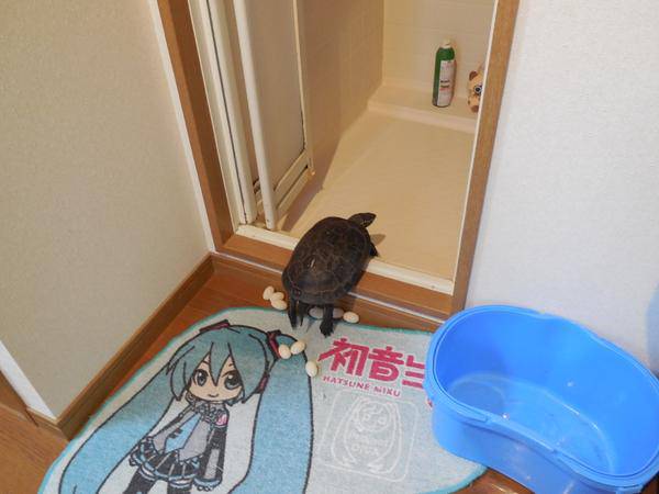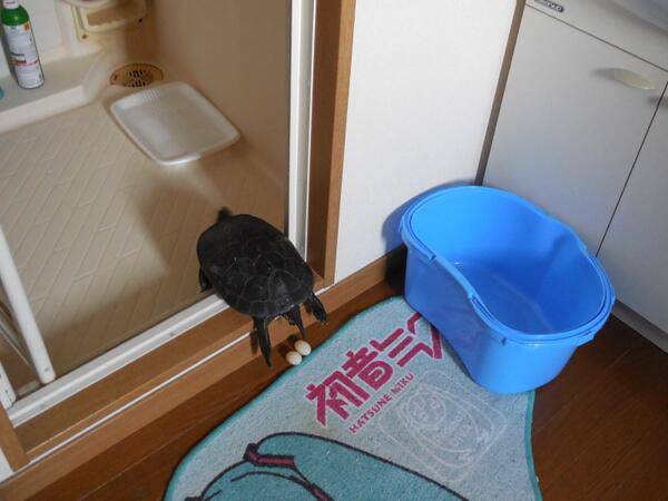 帰宅したら亀が産卵してて風呂に入れない