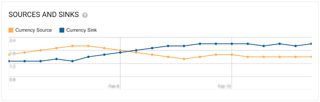 Sources and Sinks レポートは、プレイヤーがリソースを購入(獲得)する速度と使用する速度の関係を示すことで、ゲーム内経済でバランスをとるために役立てることができます。たとえば、BombSquad を個人で開発した Eric Froemling は Sources and Sinks レポートを利用して、プレイヤーがチケットを購入する場面と使用する場面のバランスをとりました。