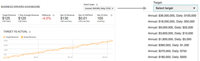 日々の目標を選択し、Player Analytics における収益目標を設定します