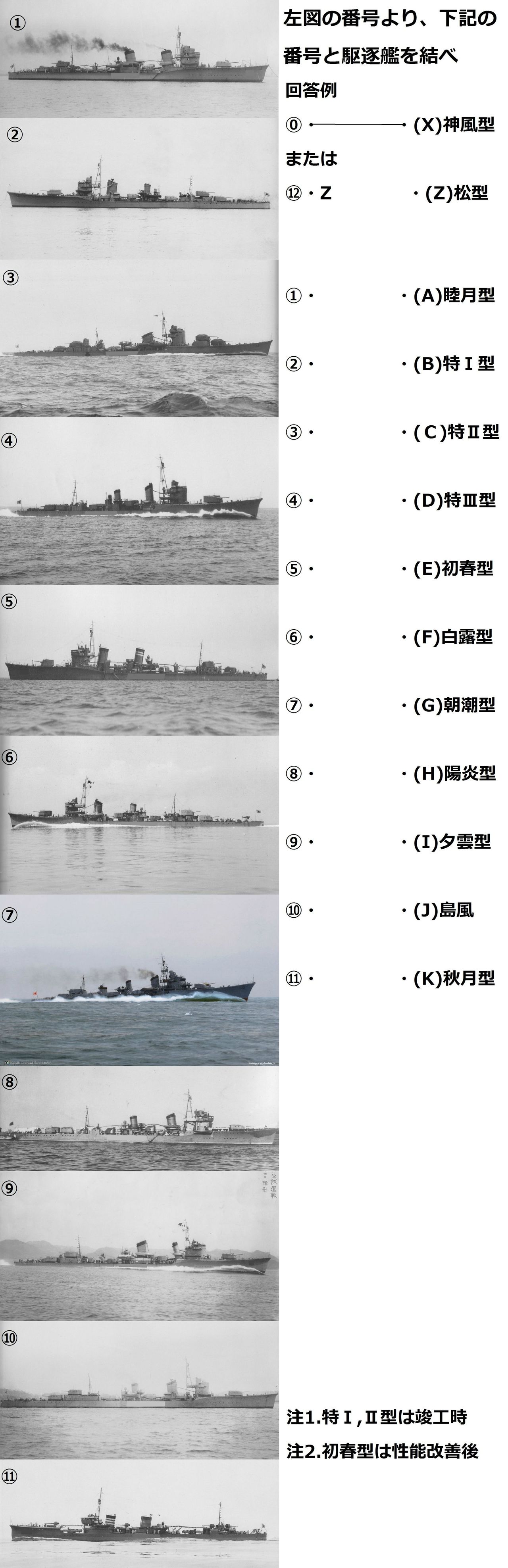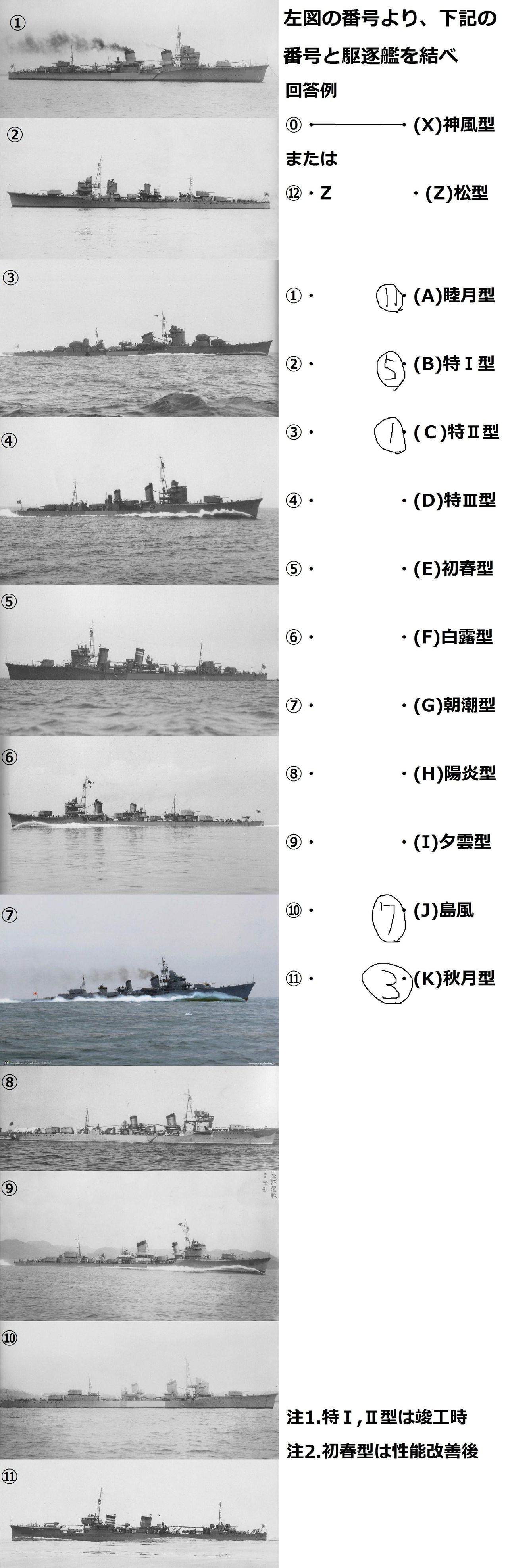 特型も煙突と吸気管の形状を覚えればいける。難しいのは初春型(改装後)からかな。正直俺も勘で当たってたw