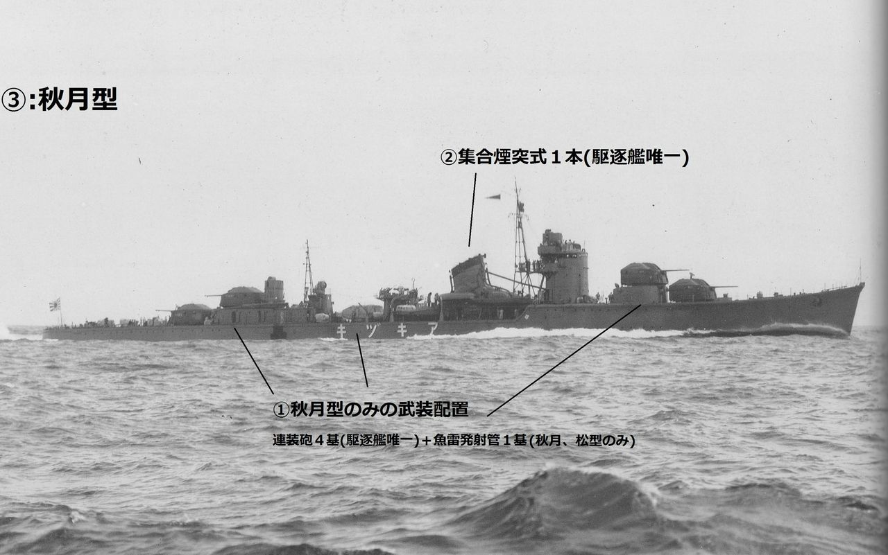 確か主砲を4基積んでる駆逐は秋月だけって聞いたから3は秋月のはず
