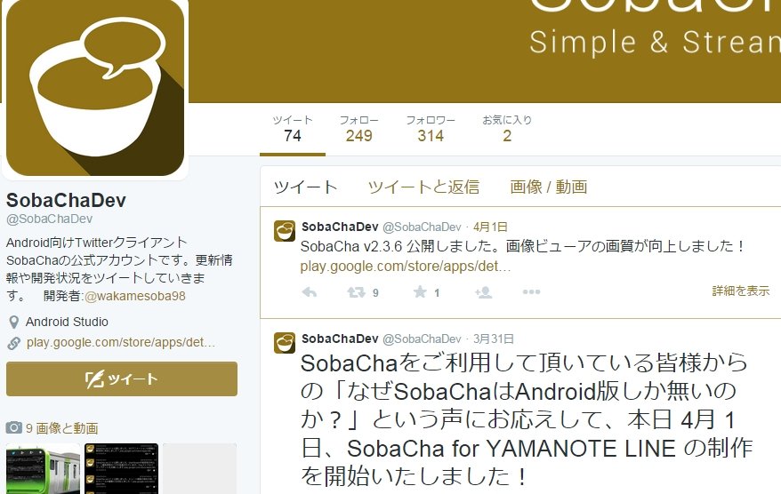 【悲報】Android向けツイッタークライアント「SobaCha」が死亡