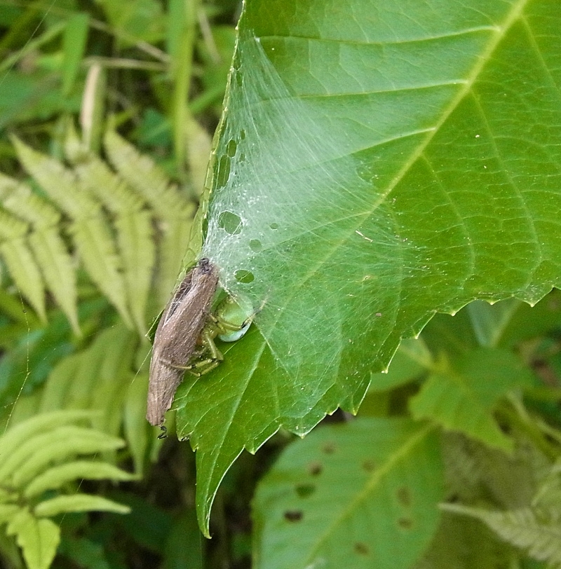 2015/06/01|クモ、カマキリ、ナナフシ , index カ行 ギンメッキゴミグモ ギンメッキゴミグモ(RICOH CX6)7ミリほどの小さなクモ。2010年横浜ふるさと村近くの林口で撮ったことがあるが、こんな近くにお住いだとは!アオオニグモ(RICOH CX6)同じく近くの山道(市に寄付された山に、市がきれいな道を作った)そばで。うーん・・・名前を調べると、体長は10-11ミリとあった。もっと大きく見えたのだが?見慣れたサツマノミダマシが7から10ミリだから、それよりずっと大きく気味悪く見えたのだ。 この記事を編集 コメント コメント一覧 1. smallcreature 2015/06/01 23:38 私のまわってる当たりではギンメッキゴミグモだらけです。 成功した家系のクモなんでしょうか?? コメントフォーム 名前 URL コメント 評価する リセット リセット 顔 星 投稿する 情報を記憶 トラックバック トラックバックURL < 前の記事